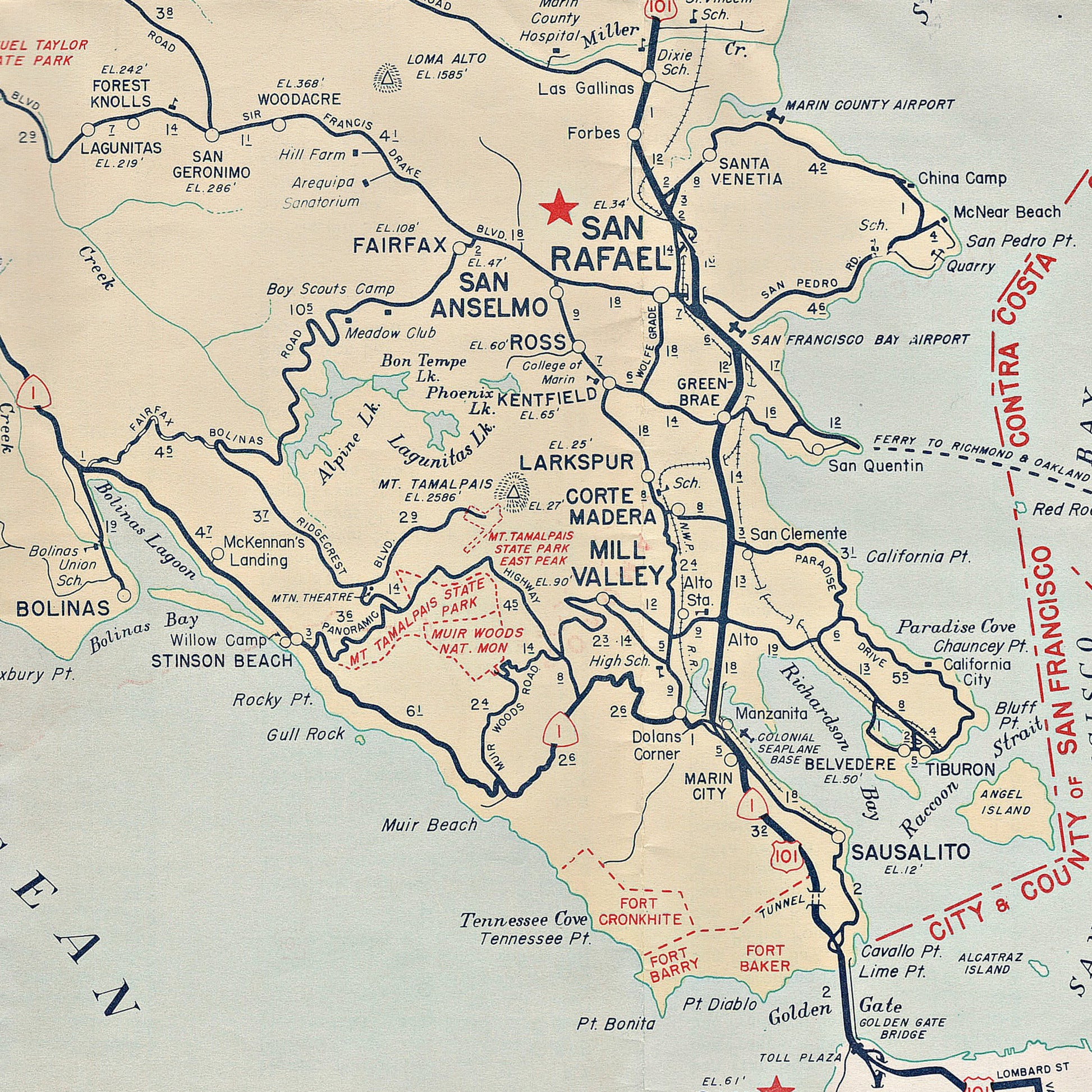 • made with a 1960s road map of Marin, printed with water based inks